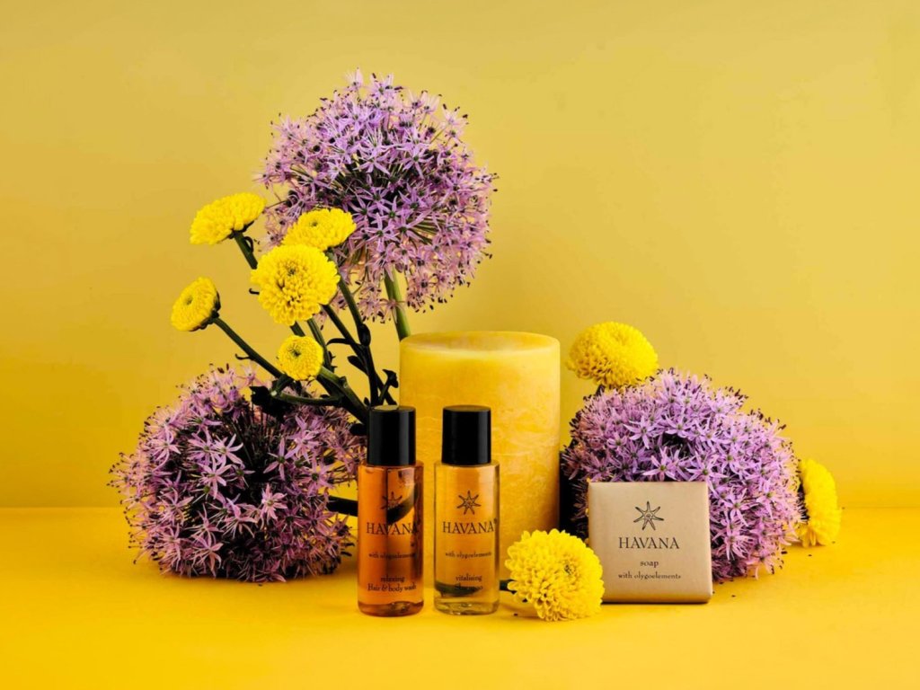 HAVANA: cosmetici per hotel ispirati alla talassoterapia. Havana, con la sua profumazione rinfrescante e salutare ispirata alla talassoterapia, è composta da prodotti per combattere stress e stanchezza. Tutti i benefici della terapia, che risale a tempi antichi, sono racchiusi in un concentrato di oligoelementi, altamente idratanti e rimineralizzanti. La sua particolare profumazione evoca ricordi coloniali, rendendo Havana una linea meravigliosa dai richiami esotici.