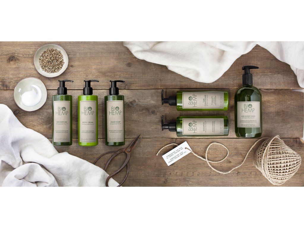 Bio Hemp è una linea di prodotti sostenibili, poiché flaconi, tappi ed etichette sono realizzati con materiale 100% riciclato e riciclabile, che garantisce un impatto ambientale minimo. La sua formula è arricchita con olio di canapa biologico italiano dalle eccellenti proprietà antiossidanti e idratanti.