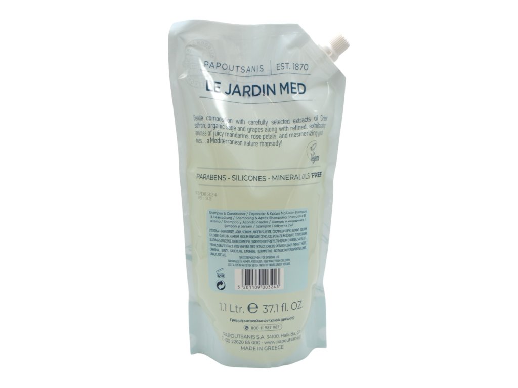 Shampoo con balsamo 1,1L LE JARDIN MED (ricarica)