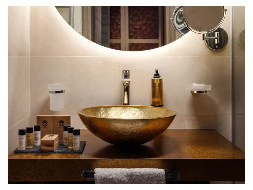 Cosmetici per hotel ARGAN SOURCE, a base di olio di argan biologico. Un elisir di bellezza diventato un must della cosmesi grazie ai suoi antiossidanti. Svolge inoltre un'azione emolliente e idratante. L'incantevole fragranza e l'elegante finitura satinata trasporteranno i vostri ospiti nell'atmosfera del Marocco. Una qualità sofisticata ispirata all'oro del deserto.