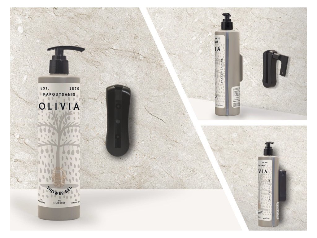 Supporto INVISIBILE per erogatori a pompa (plastica, nero)