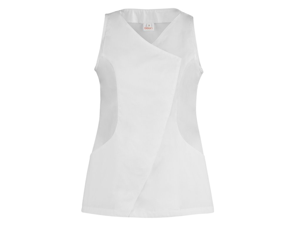 La tunica senza maniche Sara è realizzata in freschissimo cotone poliestere con un peso di 143 g/m² e ha un taglio Slim Fit, accentuato da diversi tagli. È caratterizzata da due tasche arrotondate e da una chiusura con bottoni nascosti dal taglio asimmetrico.
