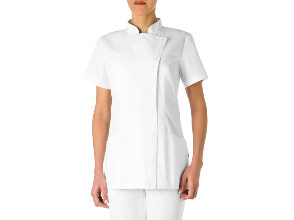 La tunica Tati a maniche corte ha un taglio Slim Fit che accentua la silhouette. Presenta un collo alla coreana con ampia chiusura, seguito da cerniere nascoste. Ha due comode tasche laterali e una tasca sul petto. La giacca è realizzata in morbido materiale: 50% cotone e 50% poliestere, 180 g/m². Tessuto adatto al lavaggio e al candeggio ad alte temperature.