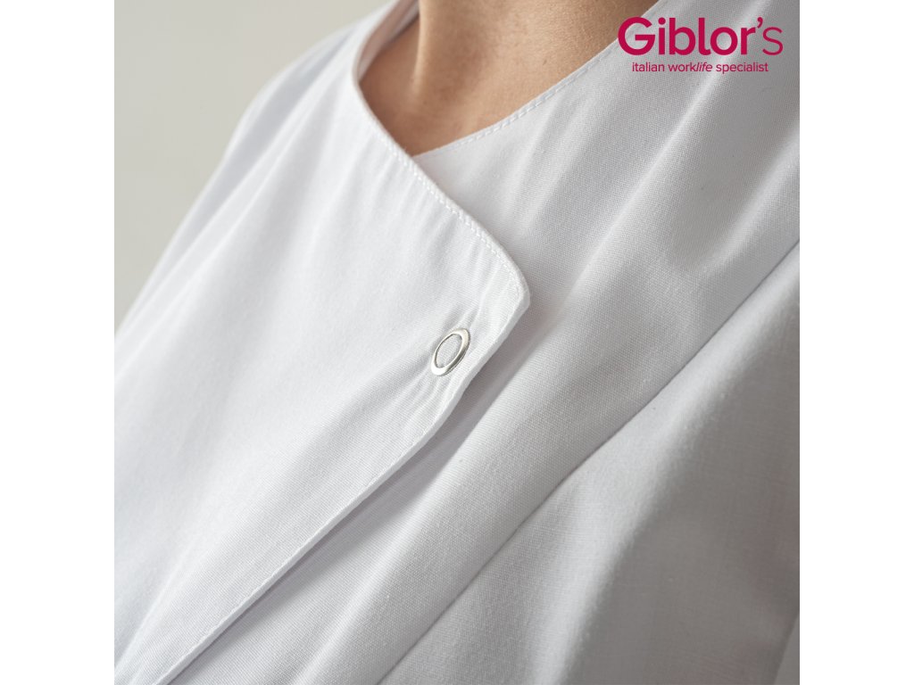 La tunica da donna Elea a maniche corte è realizzata in tessuto morbido ed estremamente resistente. Ha un taglio Slim Fit, garantendo comunque sufficiente libertà di movimento grazie ai due lati in rete sul retro. Presenta: due comode tasche laterali, due tagli sul davanti e sul retro, una chiusura asimmetrica con bottoni dal taglio geometrico che fodera il capo e sei anelli automatici in nichel a vista che aggiungono un tocco di femminilità.