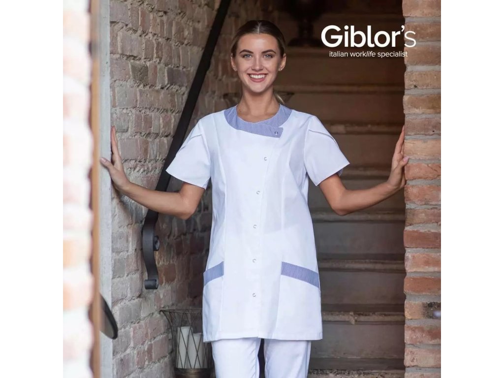 La tunica Giselle è realizzata in un morbido e fresco mix di poliestere e cotone, dalla linea slim. Questa tunica da donna ha pratiche tasche laterali. Il bordo delle tasche è abbinato al colletto.