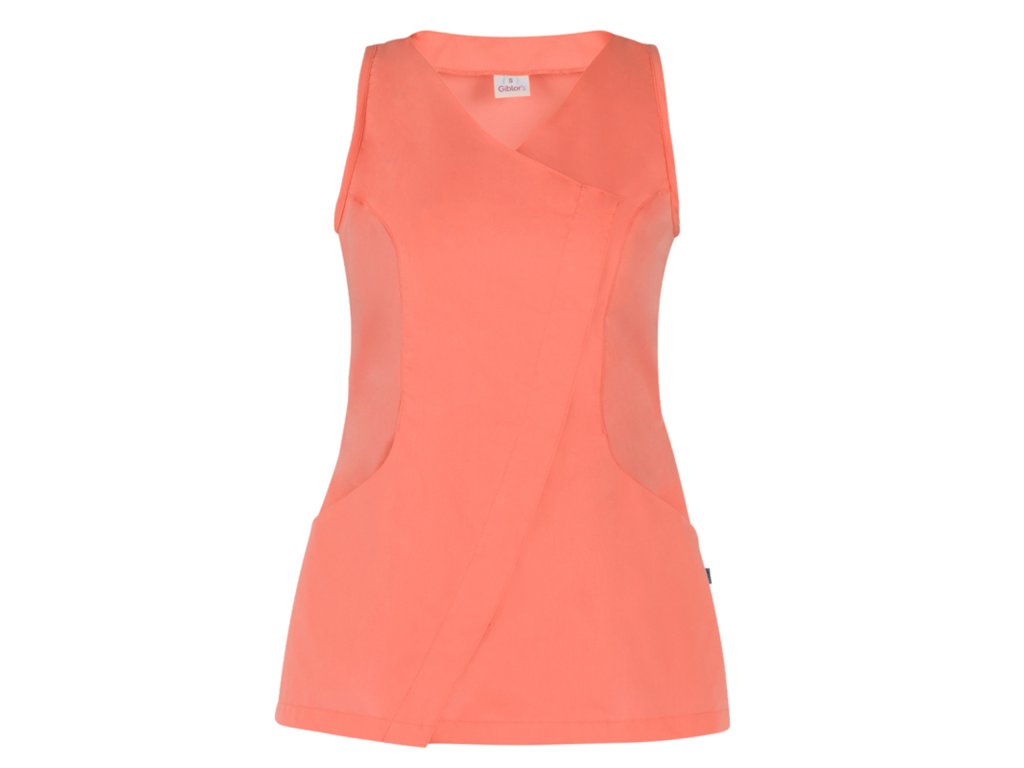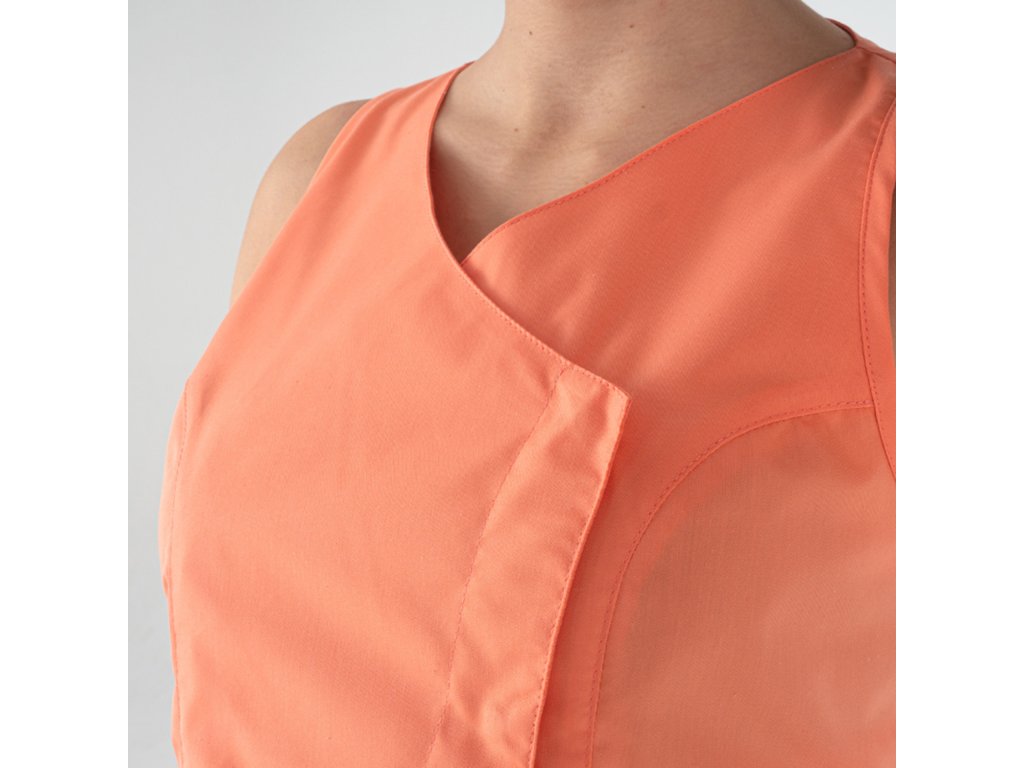 La tunica senza maniche Sara è realizzata in freschissimo cotone poliestere con un peso di 132 g/m² e ha un taglio Slim Fit, accentuato da diversi tagli. È caratterizzata da due tasche arrotondate e da una chiusura con bottoni nascosti dal taglio asimmetrico.
