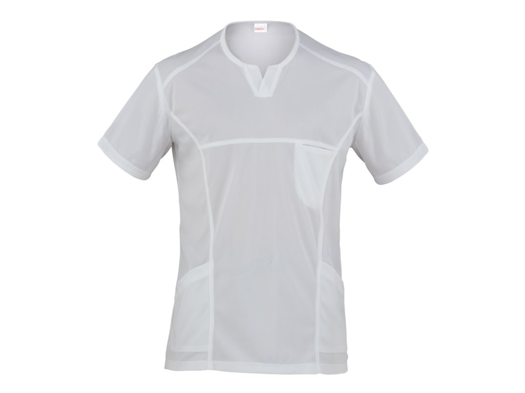 La tunica da uomo Eros è realizzata interamente in maglia piquet, che garantisce elevata traspirabilità, asciugatura rapida e mantenimento di forma e colore anche con lavaggi ad alte temperature. Il capo presenta maniche corte, scollo rifinito con fettuccia diagonale dello stesso tessuto e un'apertura di 7 cm nella parte centrale anteriore, che crea un motivo a V. Grazie al suo design moderno e sportivo, la tunica Eros è ideale per saloni, spa e studi dentistici. È disponibile nei colori bianco, nero, blu e verde militare e la sua versione femminile è la tunica Erika.