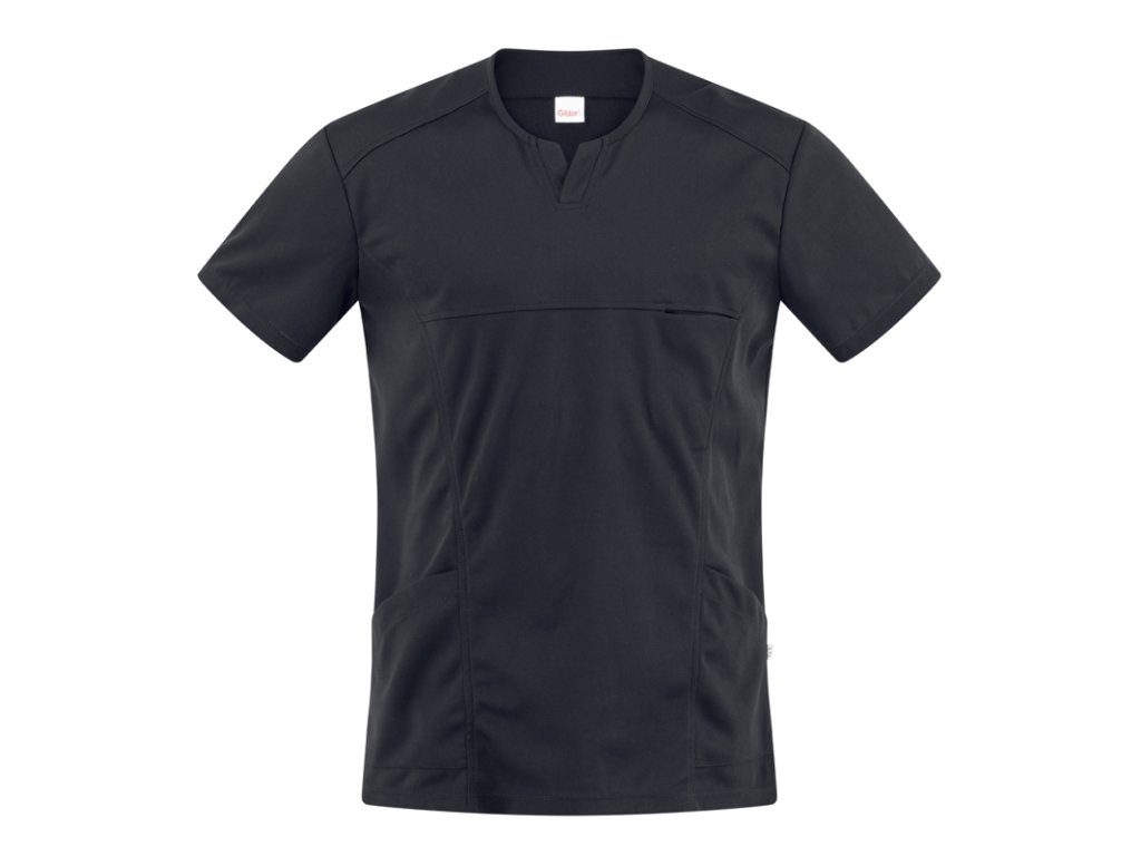 La tunica da uomo Eros è realizzata interamente in maglia piquet, che garantisce elevata traspirabilità, rapida asciugatura e resistenza a forma e colore anche con lavaggi ad alte temperature. Il capo presenta maniche corte, scollo rifinito con fettuccia diagonale dello stesso tessuto e un'apertura di 7 cm nella parte centrale anteriore, che crea un motivo a V. Grazie al suo design moderno e sportivo, la camicia Eros è ideale per saloni, spa e studi dentistici. È disponibile nei colori bianco, nero, blu, beige, verde militare e ha la sua versione femminile nella tunica Erika.