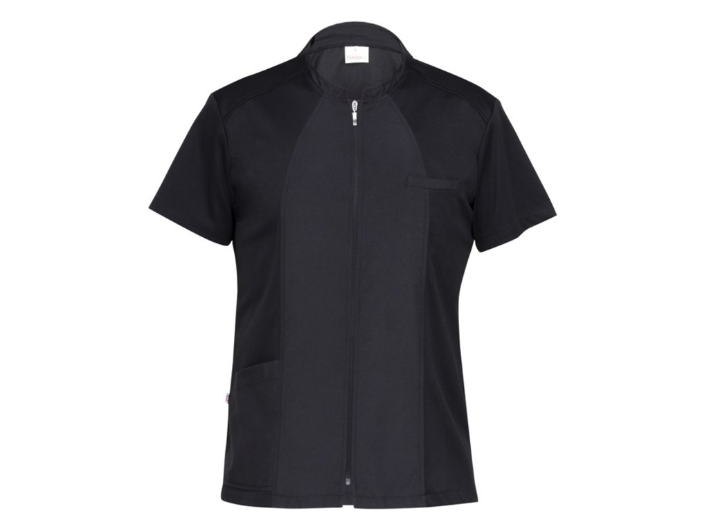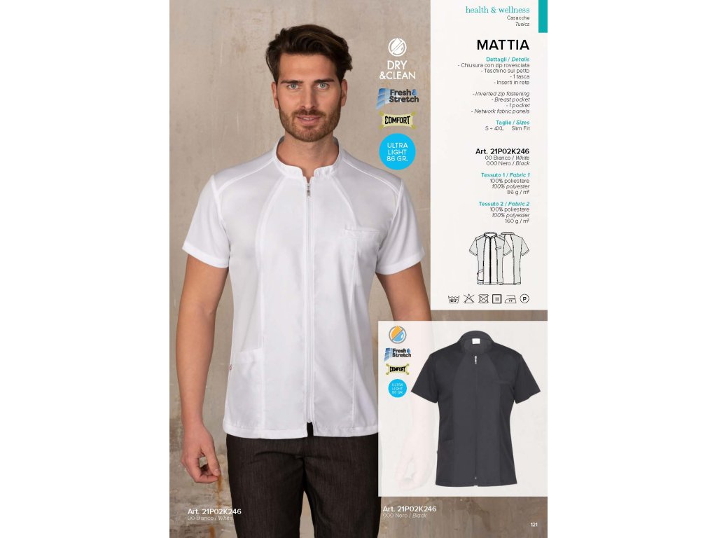 Tunica da uomo Mattia con chiusura centrale con cerniera più resistente agli urti, taschino lato cuore e due spacchi stile camicia sul retro per una linea moderna. Le maniche corte e la parte anteriore e posteriore sono realizzate in rete per aumentare la traspirabilità del capo. Le doppie cuciture lo rendono un capo sportivo dallo stile pulito in entrambe le varianti di colore: bianco e nero.