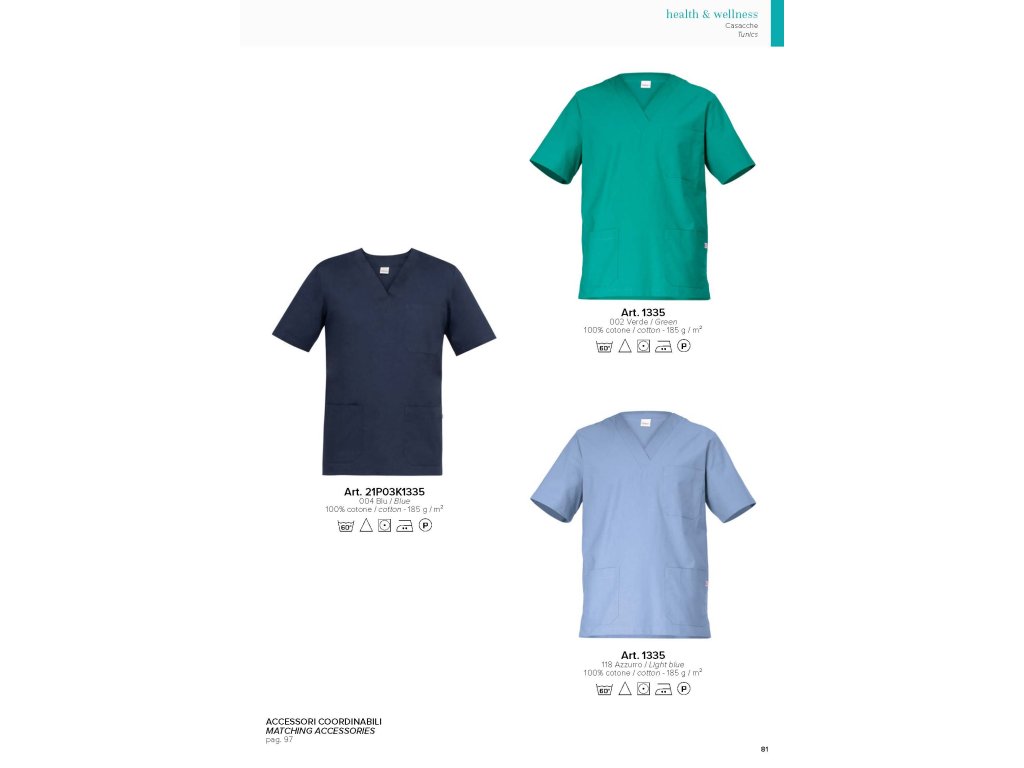 La casacca Piero è un must have del settore Health&Care, un capo perfetto che offre praticità e comfort. Il modello presenta maniche corte e scollo a V, impreziosito da un'ampia fascia in vita che si sovrappone sul davanti. Questa casacca presenta due comode tasche laterali e un'ampia tasca sul petto. È realizzata in gabardine 100% cotone, un tessuto particolarmente resistente alle alte temperature e ai lavaggi con cloro, pur mantenendo la sua morbidezza: prestazioni eccellenti per i professionisti più esigenti, disponibile nella classica versione bianca e nelle ricche tonalità del verde e del blu. Adatto al modello femminile Milena.