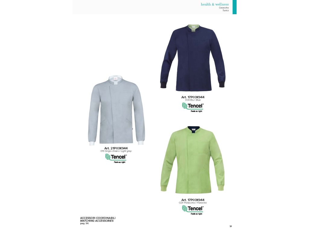 La tunica a maniche lunghe Silvano è realizzata in TENCEL™, una fibra botanica che offre eccellenti prestazioni per tutto il giorno e assorbe fino al 50% di umidità in più rispetto al cotone, è resistente all'usura e mantiene forma e colore senza alterarsi. Presenta un collo alla coreana, chiusura con bottoni nascosti, tasca sul petto a vista e due tasche laterali. La versione a maniche lunghe è rifinita con un polsino a costine molto comodo.
