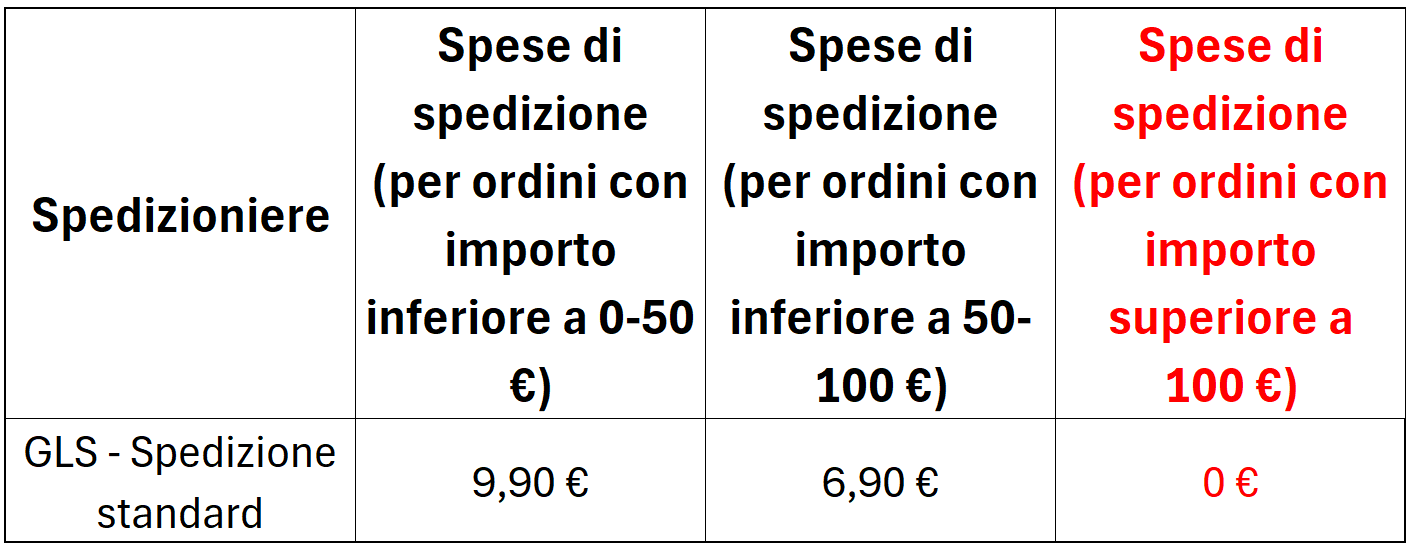 Consegna GRATUITA per tutti gli ordini superiori a 100€